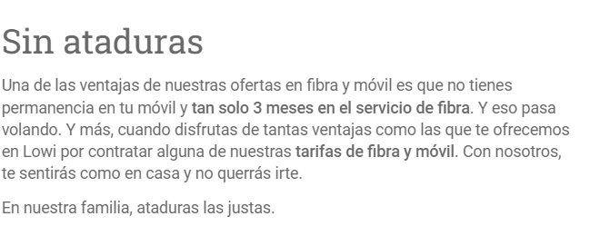 - Sin ataduras ni costes ocultos. El móvil de Lowi no tiene permanencia y la fibra solo 3 meses por el servicio de instalación.